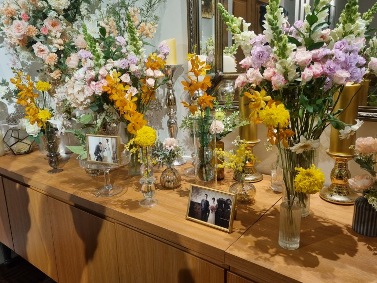 앞쪽 꽃 장식은 현재 생화+조화 혼용인데
