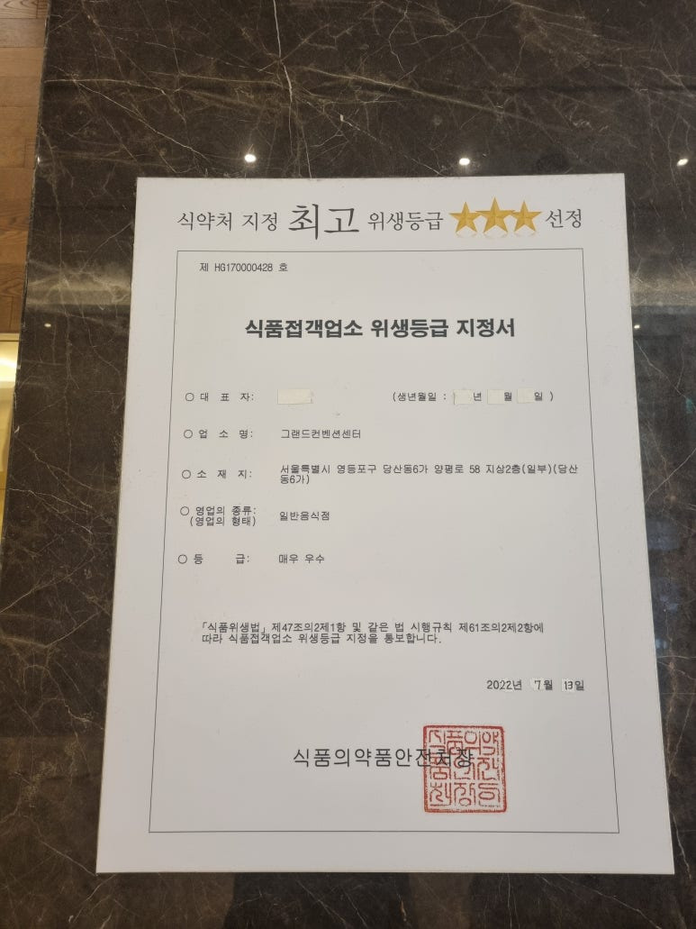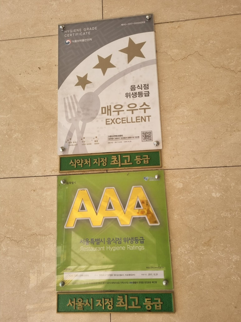 위생등급 트리플 AAA 받은 곳이라